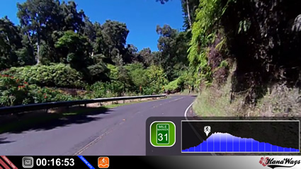 Maui's famed road to Hana is your tropical ride in this 3 hour cycle training video. Covering 45 miles starting in Paia and finishing in Hana, this route will take you around 600 winding curves, over more than 50 bridges, and give you stunning ocean views. Take the scenic road on your indoor workouts.